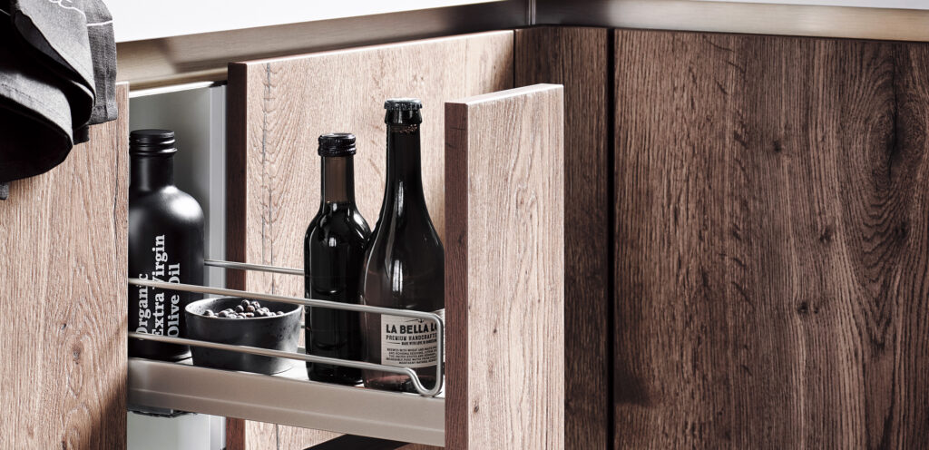 - Aufgrund der Gegebenheiten ergibt sich bei Ihren Unterschränken eine Lücke von 30 cm? Nutzen Sie diesen Spalt und integrieren Sie einen Küchenunterschrank mit Apothekerauszug. Dieser eignet sich ideal, um Zutaten in Flaschen wie Essig und Öl oder aber Reinigungsmittel zu verstauen. Ausgestattet mit Korbsystemen bietet er auch eine gute Lösung, um Gewürze sortiert aufzubewahren.