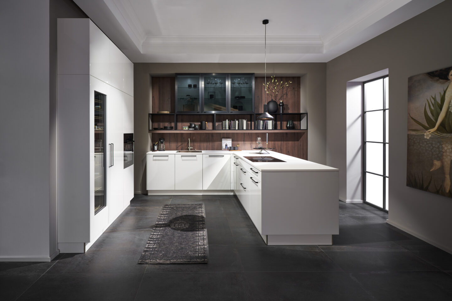 Damit sich alle Schranktüren und Schubladen bequem öffnen lassen, sollte der Innenbereich der Küche in U-Form mindestens 2 Meter breit sein. Hochschränke werden so dezent platziert, dass sie niemals überladen wirkt, sondern durch ihr ansprechendes Design zum Blickfang wird.
